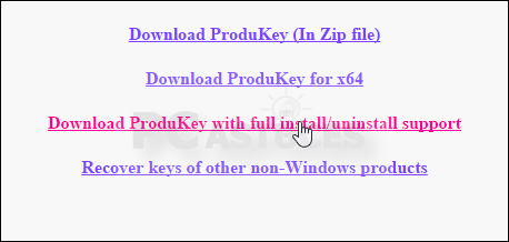 - Descendez dans la page et cliquez sur le lien Download ProduKey with full install/uninstall support.