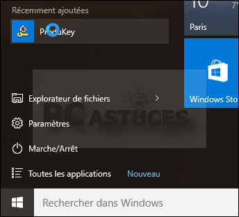 Accessible par le menu Demarrer de Windows 10, ou dans le champ de la recherche